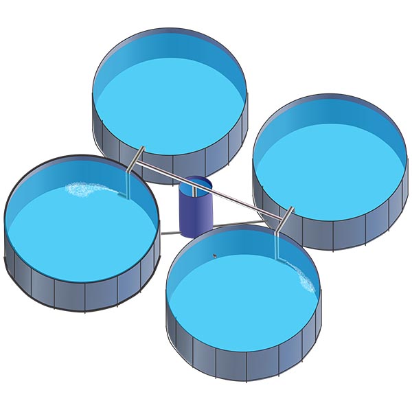 Bio-floc aeration system injects micro-fire bubbles in bio-floc tank so it maintains high DO level.flowing water Does not let floc to settle down on the bottom.this oxygenated water is distributed into different tanks.this system also recycles water.